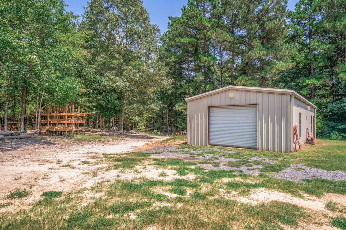 Enjoy a stocked pond with hybrid bass, boat dock, axe throwing range, gun range, deer feeders and stands, custom fire pit, smoker, game processing station, and even 3 RV hookups. The treehouse/guest house is something to behold! Its custom touches, including an outdoor shower, make it one of the most elaborate and unique places for family and guests to stay. Additions such as a lumber rack and fenced areas make this property as practical as it is beautiful. Plus, cleared wooded areas and improved front pasture add extra value and eye appeal.