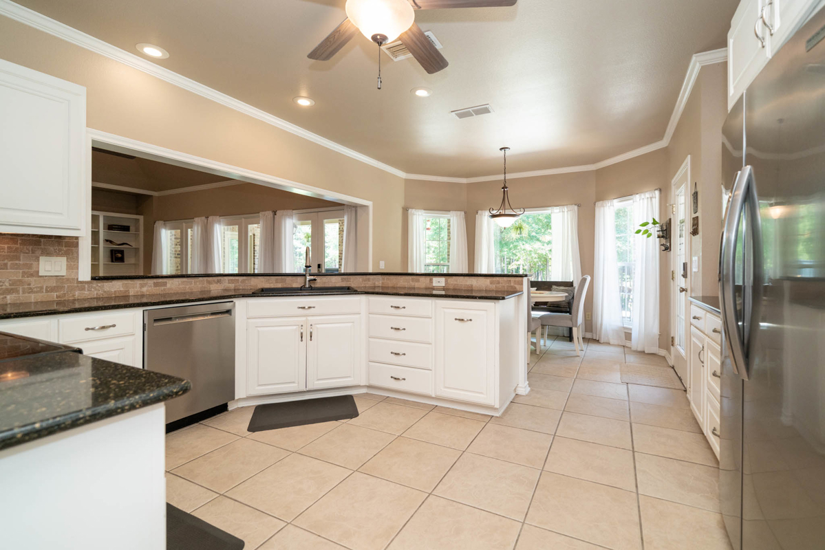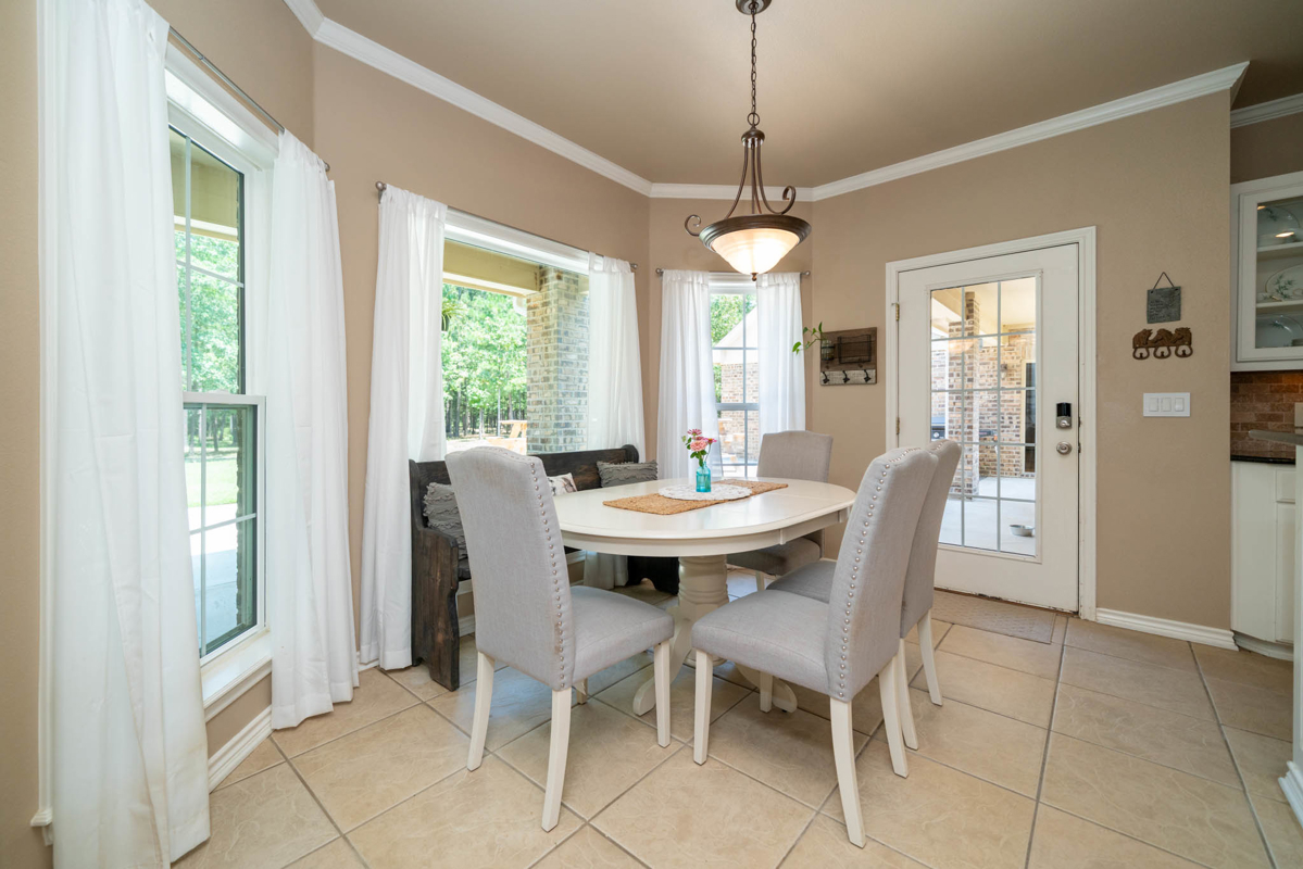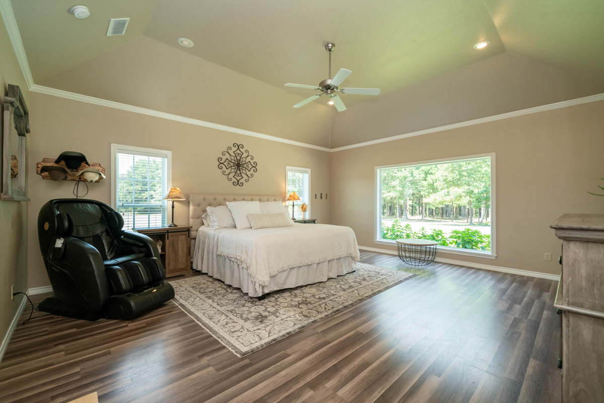 The updated 3-bedroom home includes new flooring, picture windows, a jacuzzi bath, and upgraded kitchen with new sink and refrigerator. Enjoy the warmth and convenience of a wood-burning fireplace as you enjoy the cool East Texas evenings. Modern touches like home automation, fiber internet, alarm system, and backup generator power ensure comfort and security.