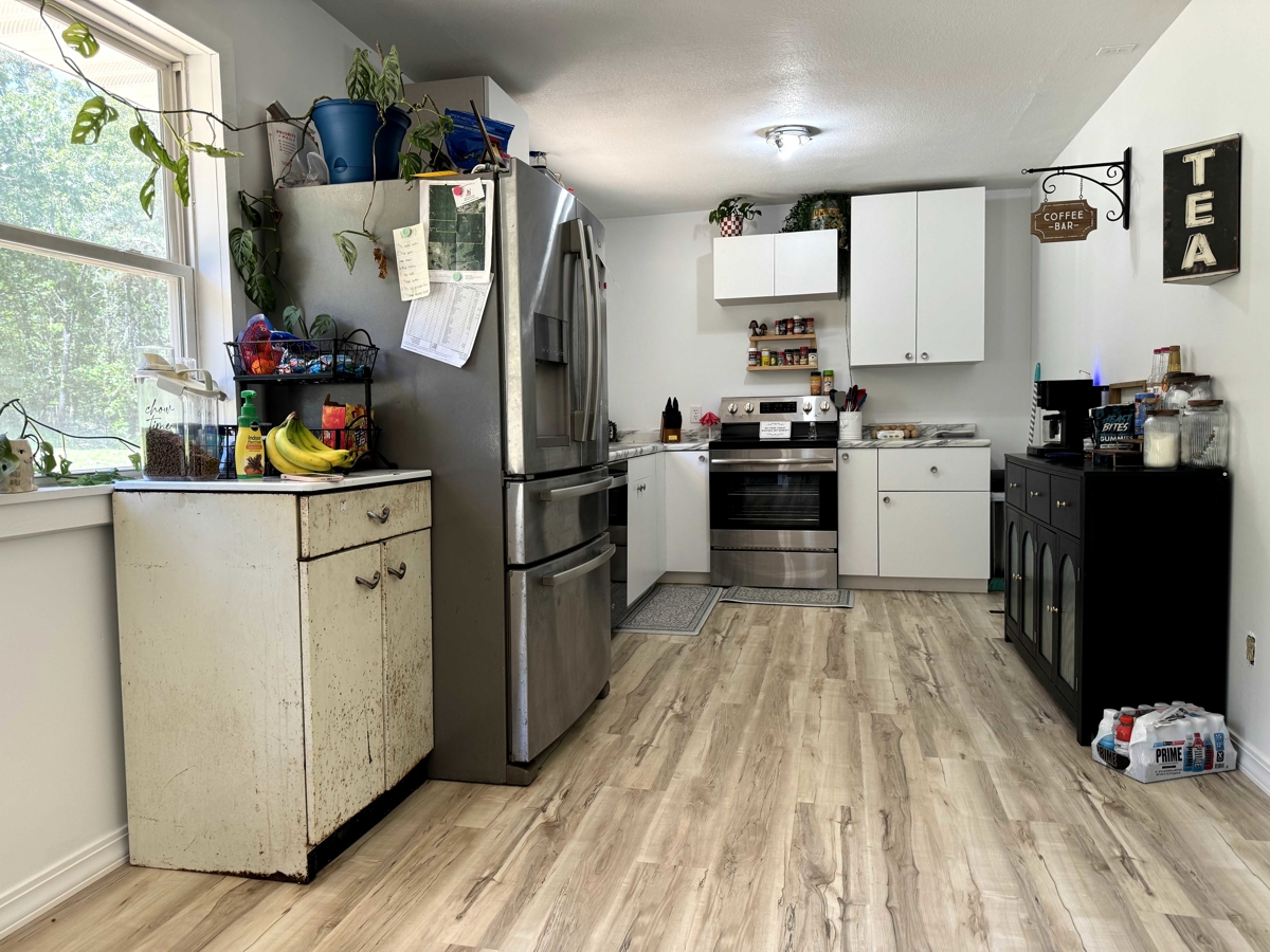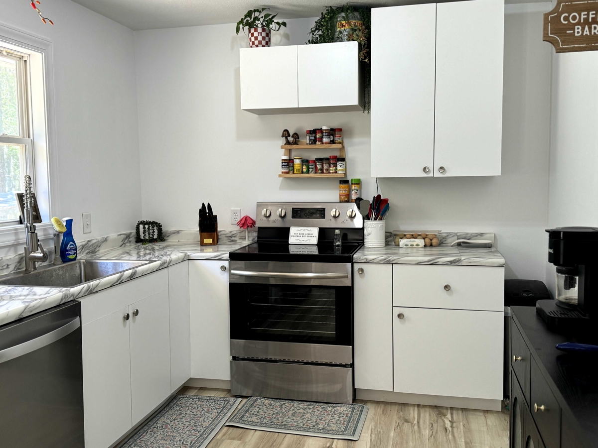 Freshly remodeled kitchen with new flooring, cabinets and all new appliances.