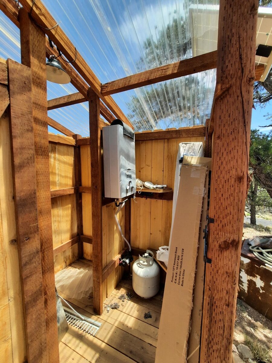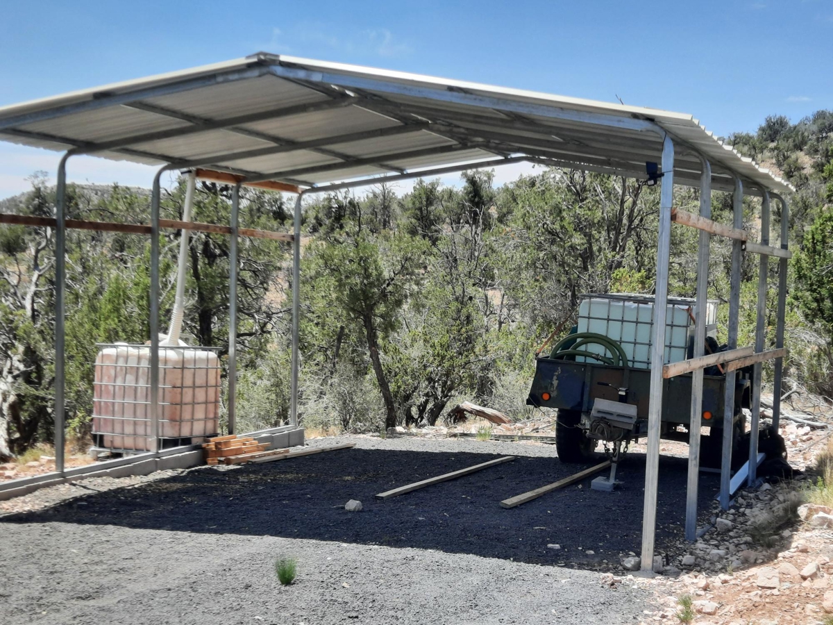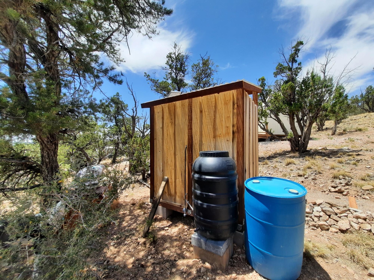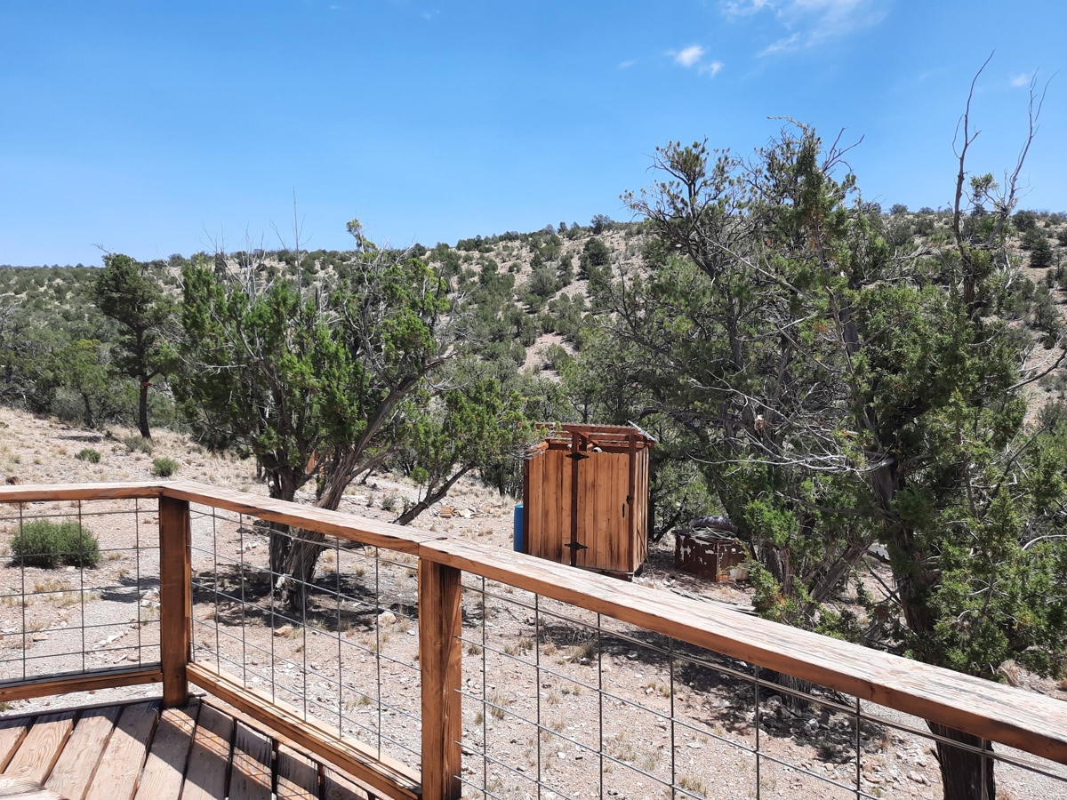 PRIVATE CANYON RETREAT – Nestled at the top of a private canyon on 10 acres sites this perfect retreat. The permitted 12X24 cabin is almost complete, situated for that perfect views off the covered deck. Nice walking trails lead to the shower house with a propane water heater and outhouse with a composting toilet. A small carport to store your toys is perfect. Above the cabin is a nice clearing to build a larger cabin with even BIGGER views!! Surrounded by State land and mountains. The property is partially fenced to add to your privacy. Only 6 miles from town and only .7 miles off the county maintained road. 35.31314,-113.01057
