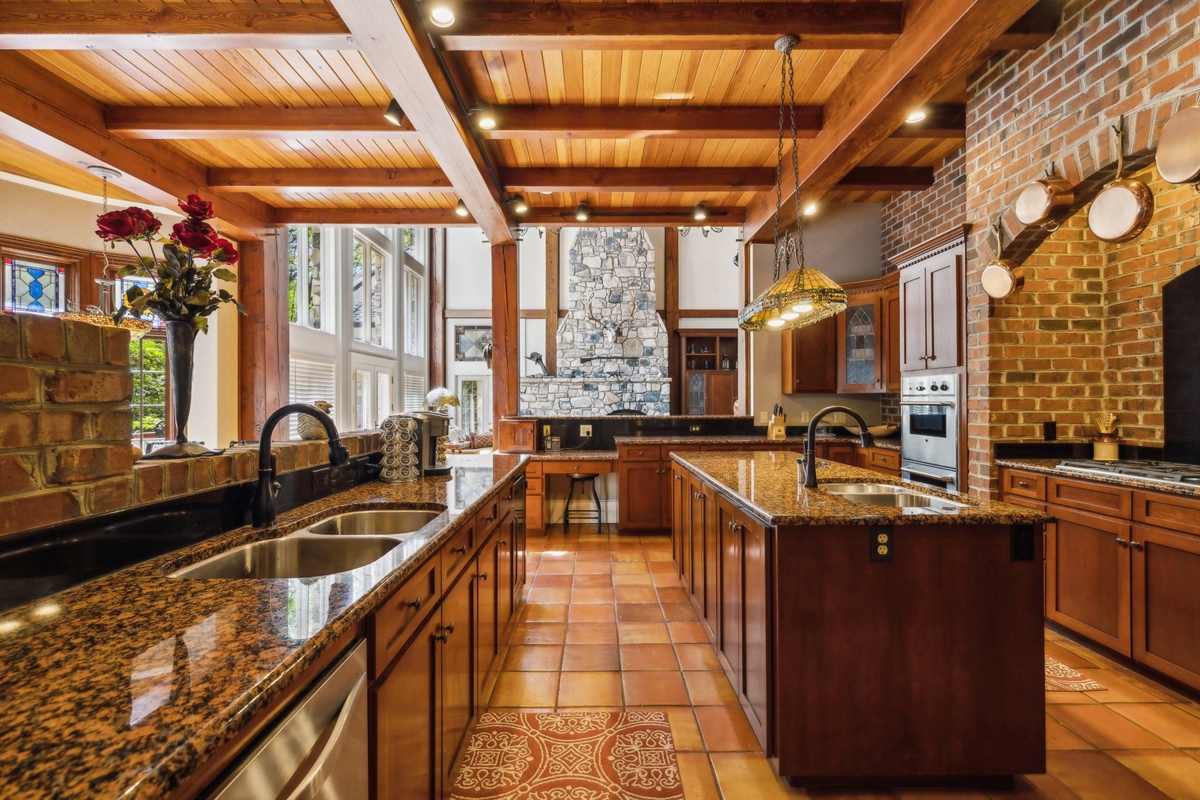 Kitchen: Chef's kitchen with a wood-burning stove, breakfast nook, and two pantries.