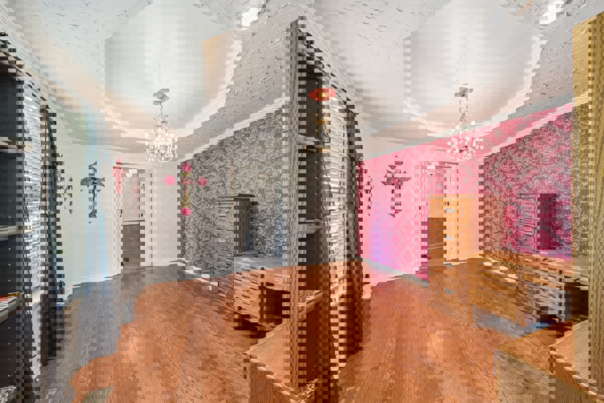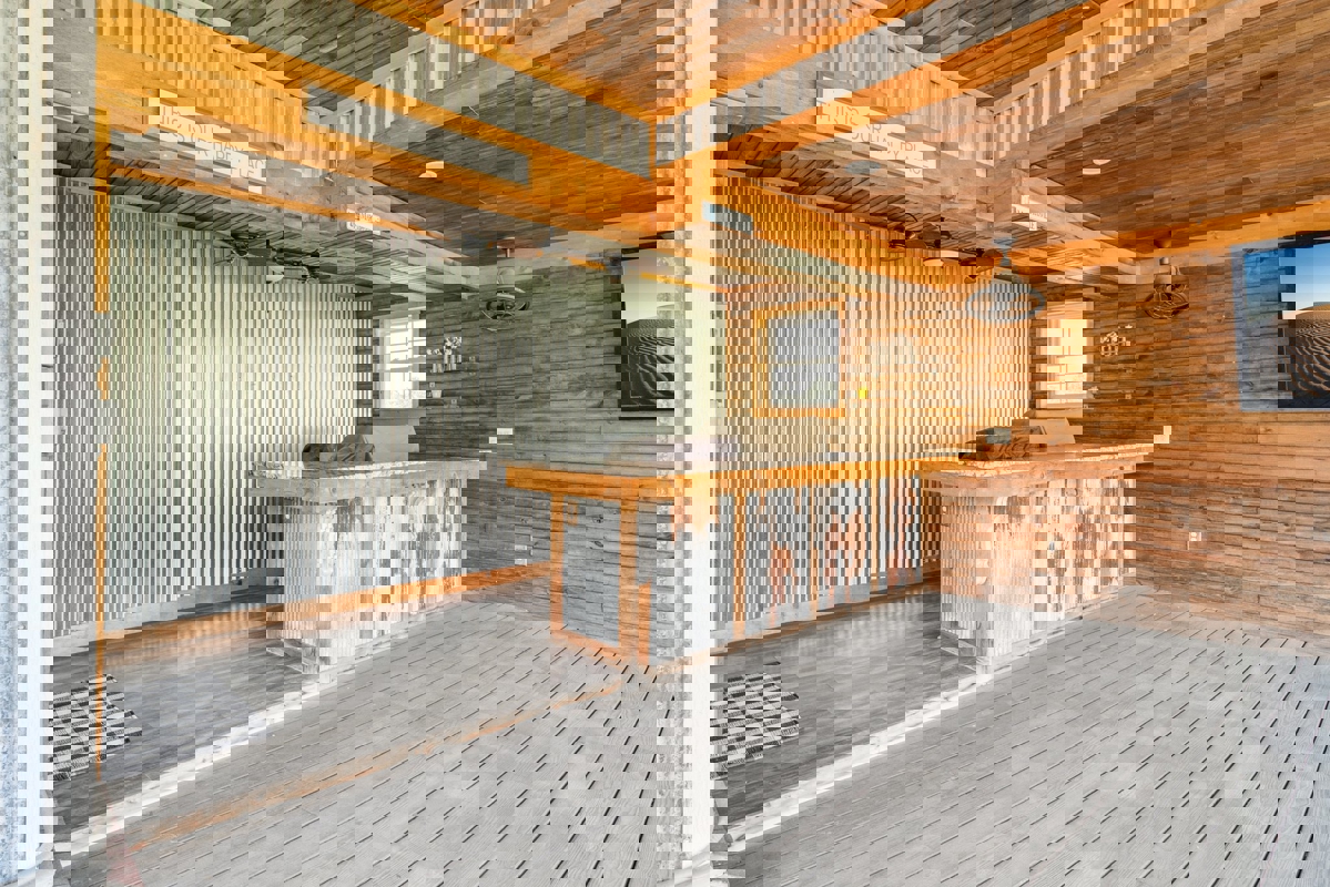 Stepping outside, you’ll love the newly built patio area with an outdoor kitchen and large TV — perfect for entertaining family and friends. The above-ground pool, complete with a new liner, will be a favorite spot during the summer months. A few steps away, the 2-car detached garage offers extra work space and a storage closet for all your holiday décor. The massive 40×60 shop comes with concrete flooring, electricity, a “man cave” area with an OU wall, and overhead drive-through doors.