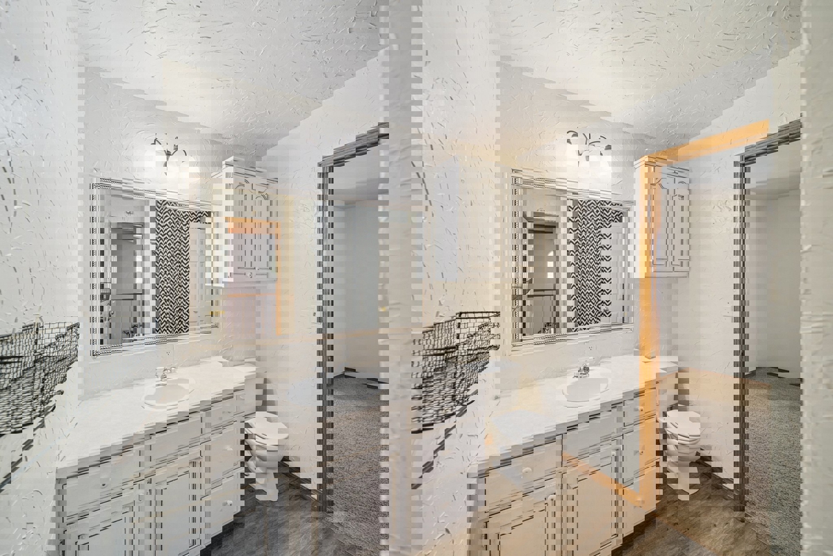 Downstairs, the master suite features a large bedroom, his-and-her walk-in closets, and a private bath with a soaking tub and separate shower. You’ll also find a half bath just off the laundry room for added convenience. Upstairs includes two additional bedrooms that share a hall bath, plus the flex room/4th bedroom.