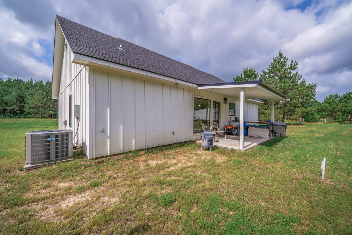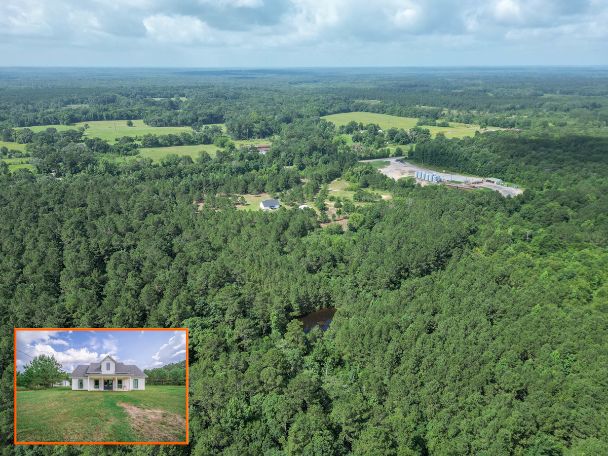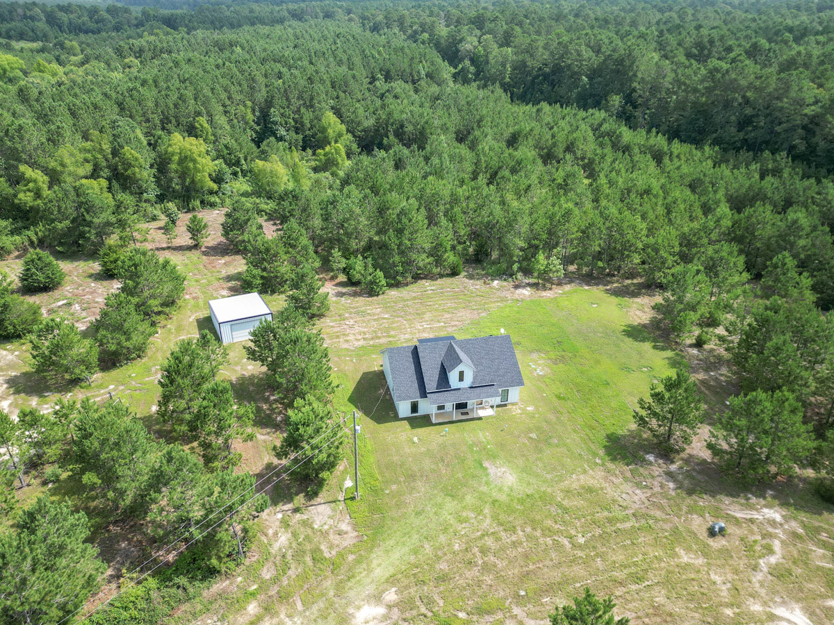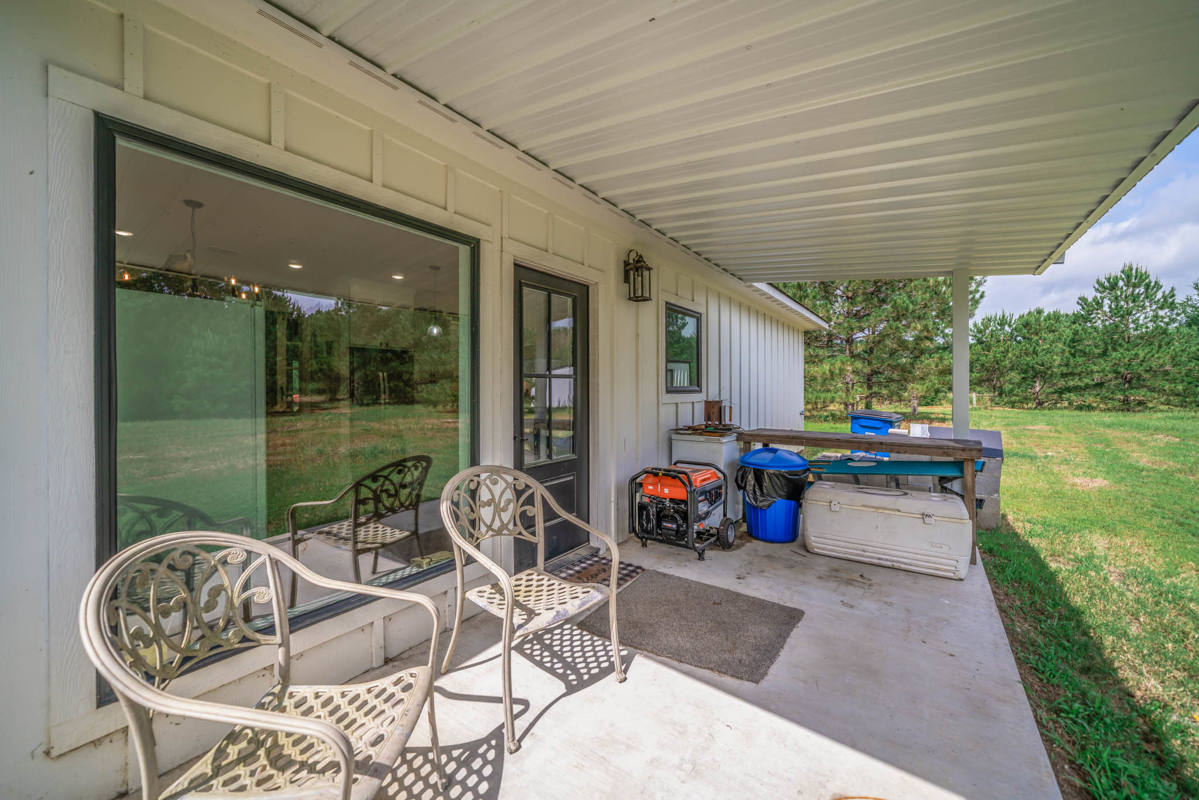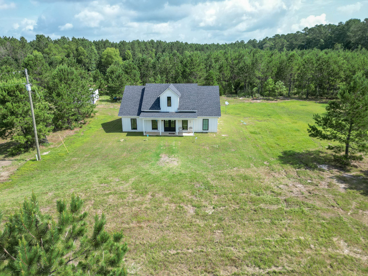 Welcome to 7761 FM 31 S, Carthage, Texas, a stunning 3 bedroom, 2 bathroom farmhouse-style home on 60+/- picturesque acres in Carthage ISD. Built in 2021, this property seamlessly combines modern comforts with rustic charm. This beautiful home showcases modern farmhouse charm with a clean, crisp white exterior and a dark roof. The inviting front porch features double black doors flanked by large windows, creating a bright and welcoming entrance.