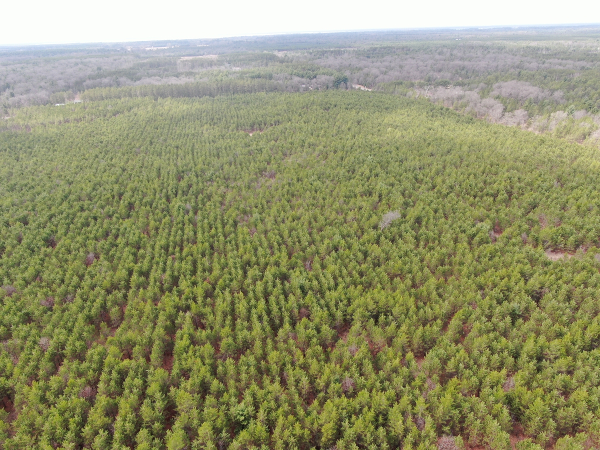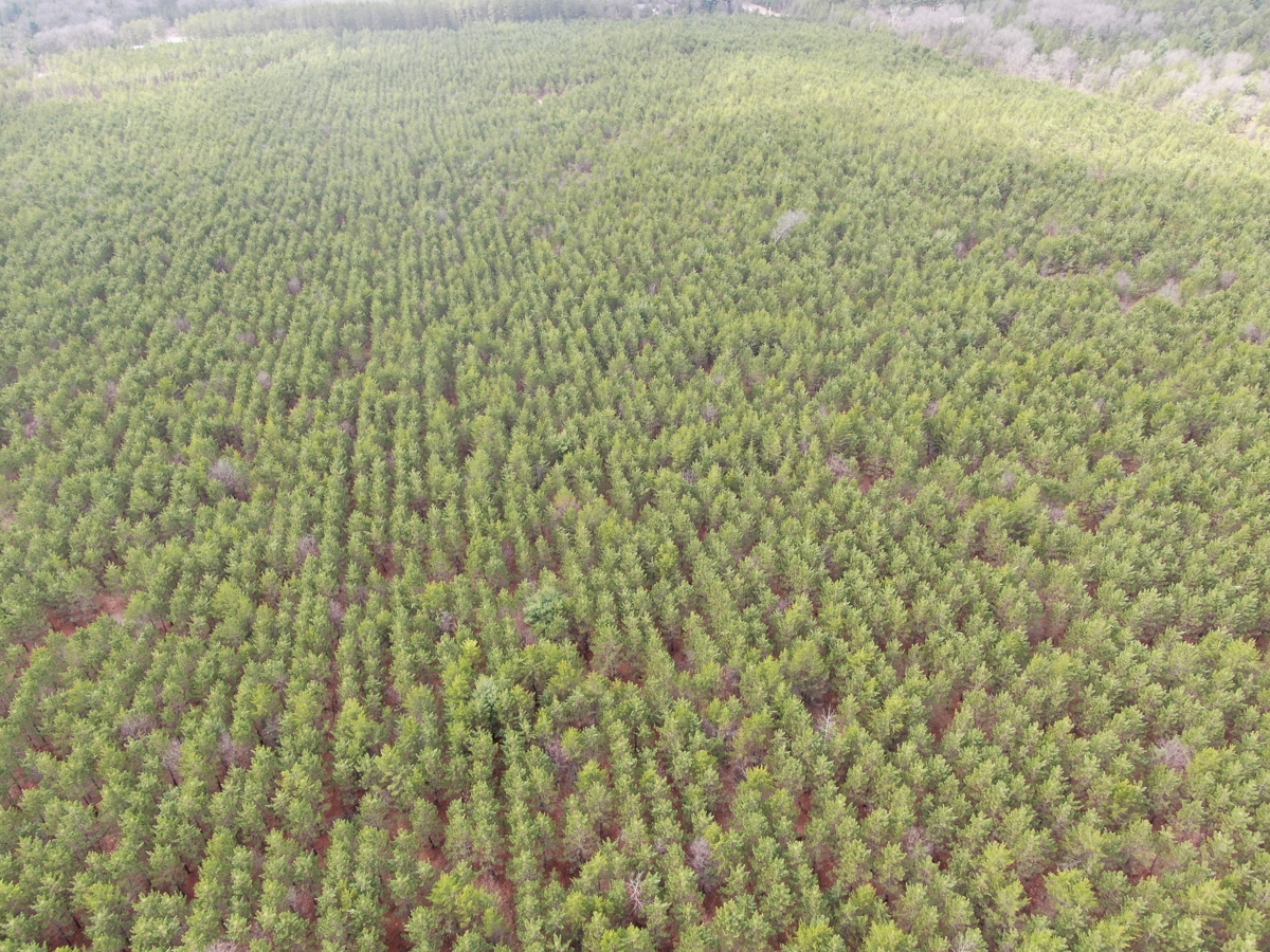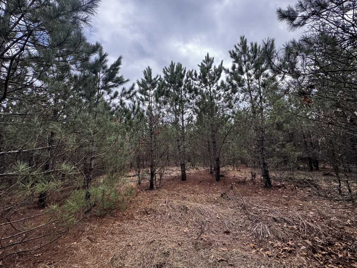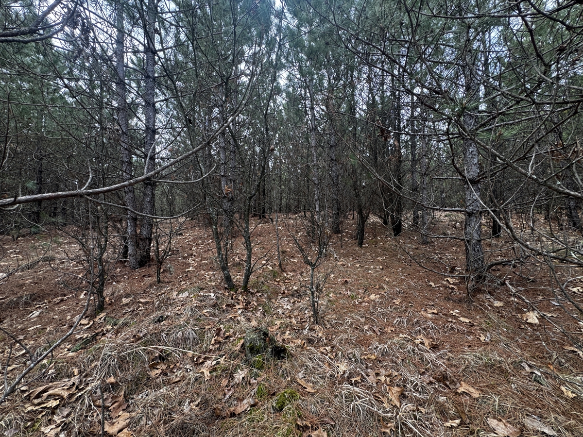 The property is predominantly wooded with the pine being at different ages