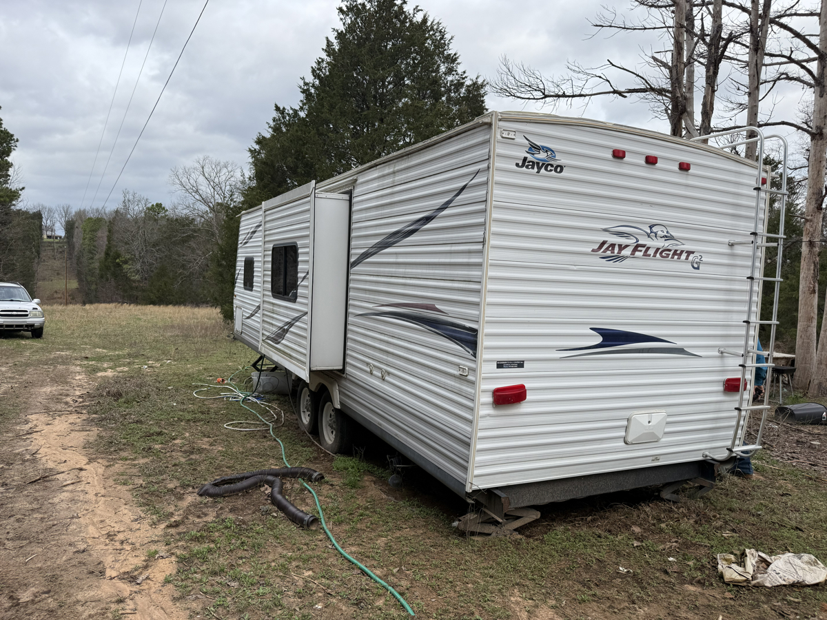 Utilities are already in place, including electricity, a drilled well, and high-speed internet. Also included is a 28-foot Jayco travel trailer and four box stands strategically positioned across the acreage for optimal hunting.
