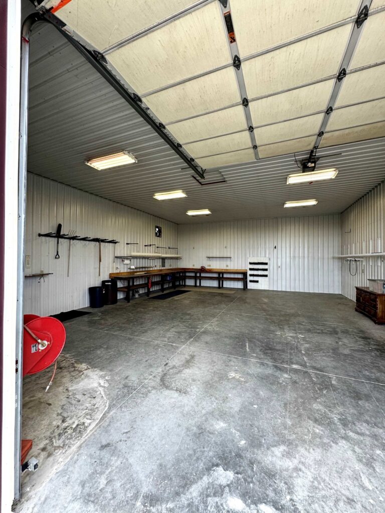 • A 32’x40’ pole-frame shop (built in 2002) with a concrete floor and apron, perfect for projects and storage.
