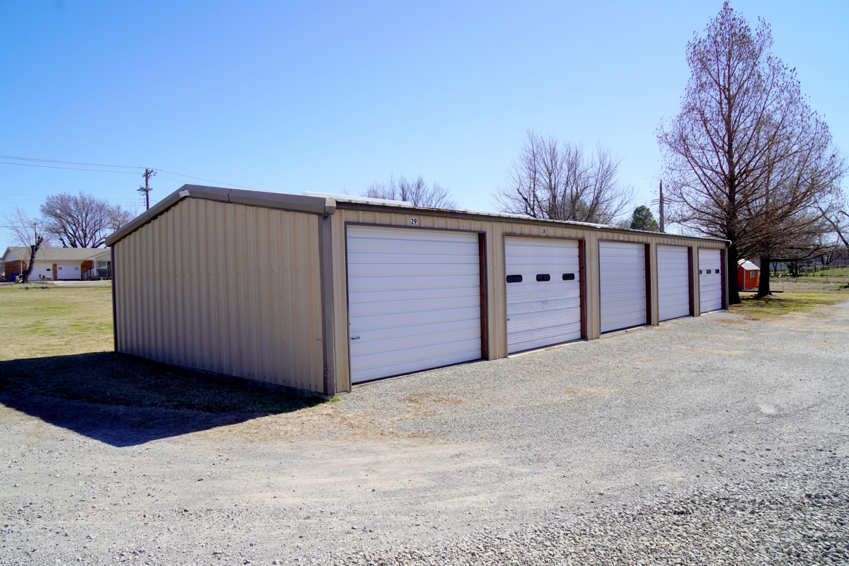 24′ each. All units are equipped with overhead roll-up doors. The storage