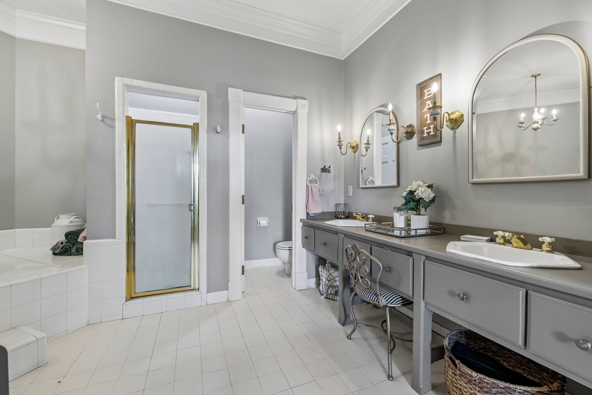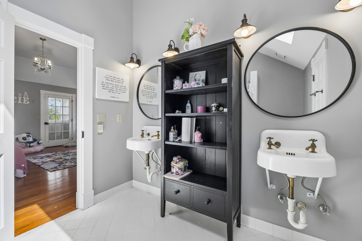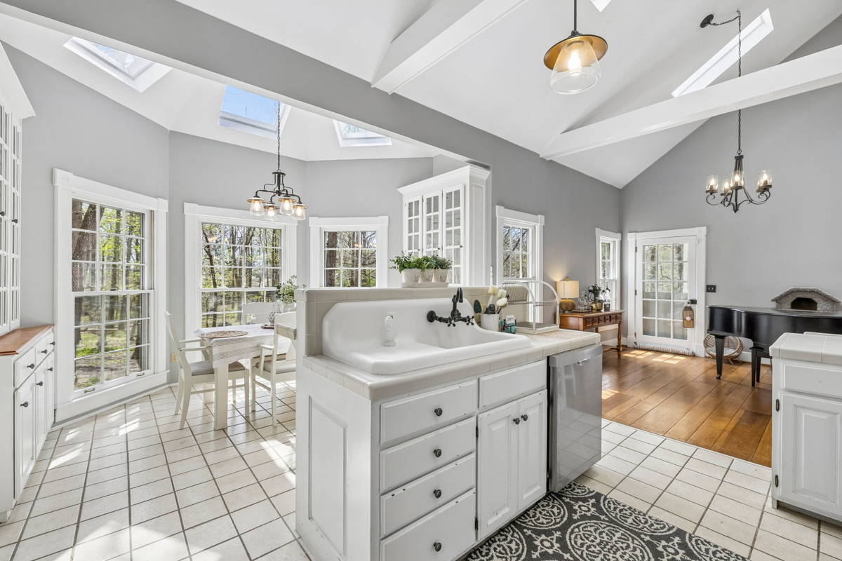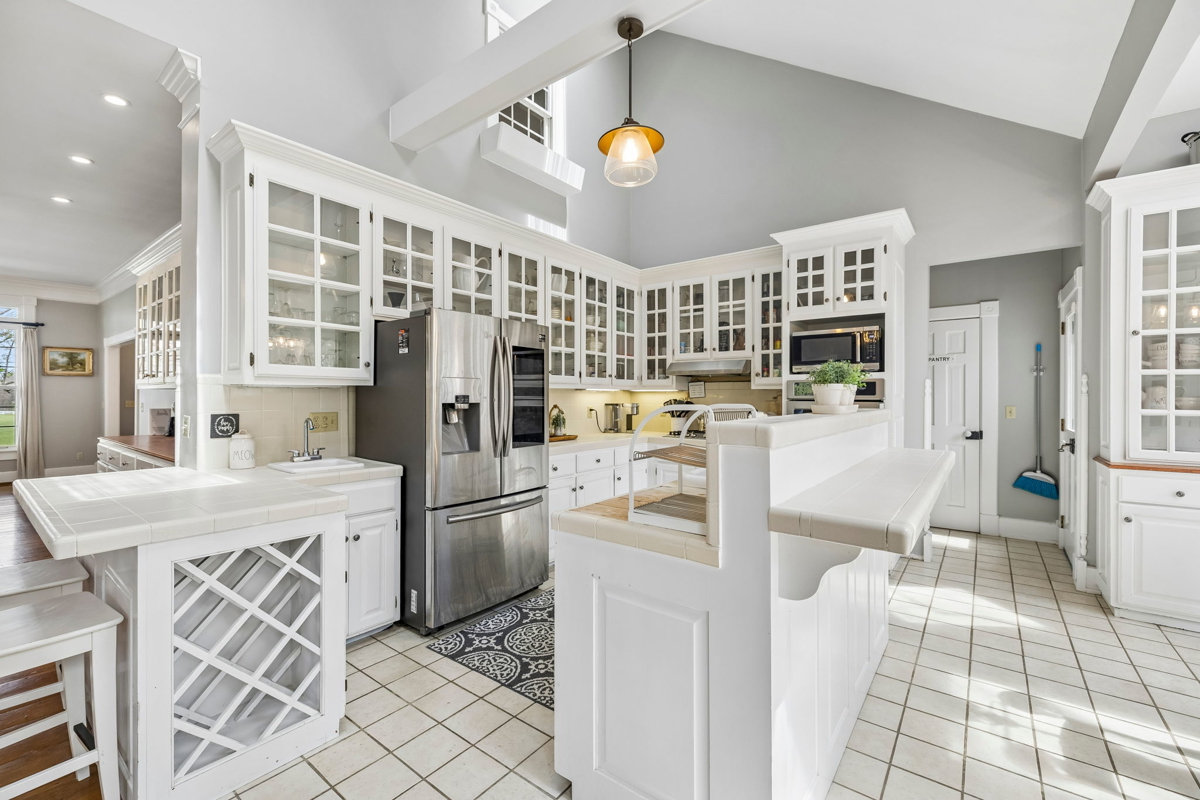 Tucked behind a long private driveway, the traditional farmhouse-style main residence overlooks rolling pastures, mature hardwoods, and picturesque countryside views. Offering approximately 3,900 square feet of living space, the home features expansive double porches, multiple fireplaces, and generous living areas designed to capture the natural beauty of the surrounding landscape.