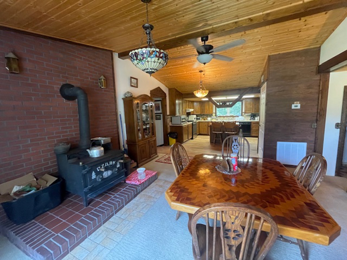 each other for socializing. The dining room has a heavy iron woodstove that you