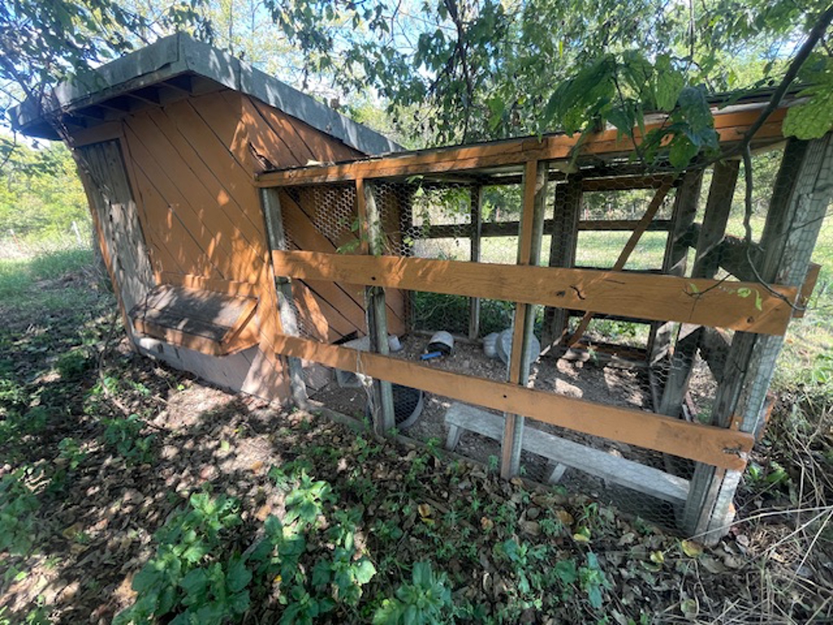 an established garden area with an adjacent chicken pen and roost. The deep