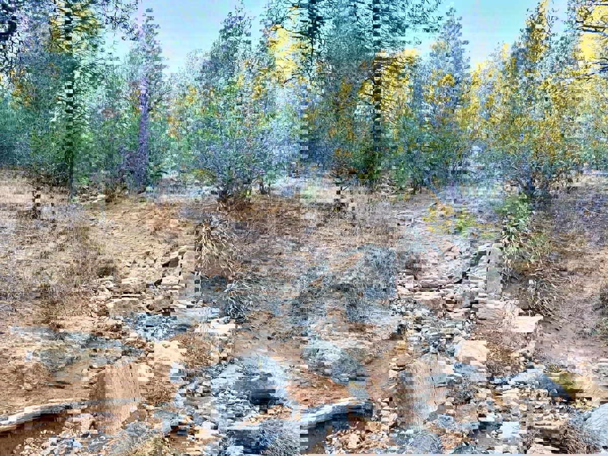 An intermittent creek crosses the southern portion of the property, adding both character and functionality. This natural feature enhances the landscape, attracts wildlife, and offers desirable locations for future building sites. The surrounding heavily wooded terrain provides shade, privacy, and a true mountain ranch feel.