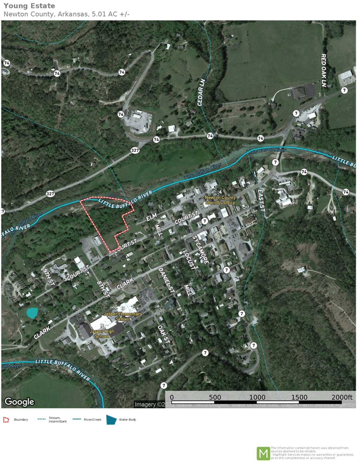 What a rare piece of property. This 5.01 acres has it all located in the city limits of Jasper, Arkansas. https://www.newtoncountychamber.com/        A portion of it is zoned mixed use commercial/residential. A portion is zoned residential only. It has 610 feet of Little Buffalo River frontage. Within walking distance to the town square (1050’) and Bradley Park. City utilities.