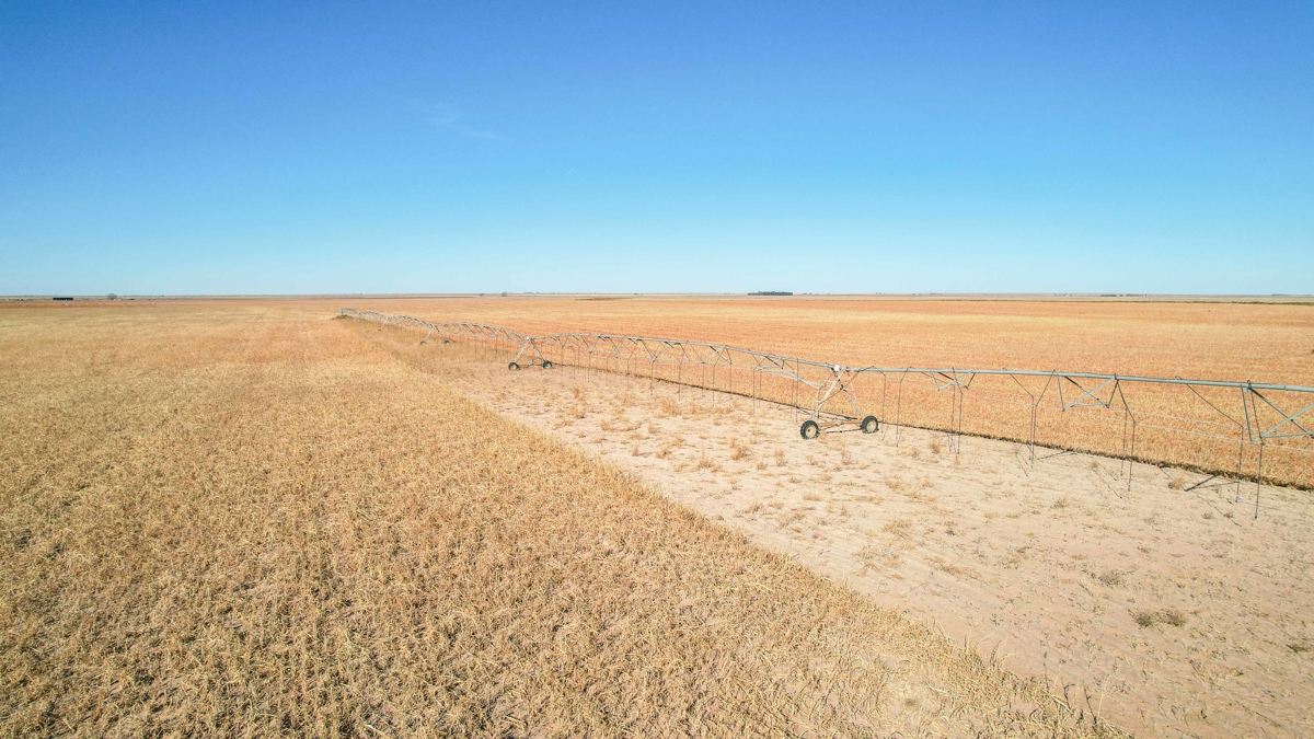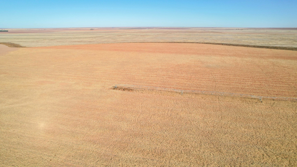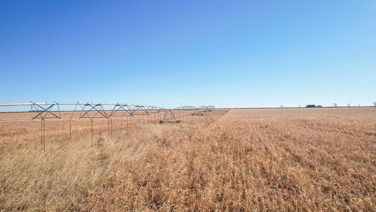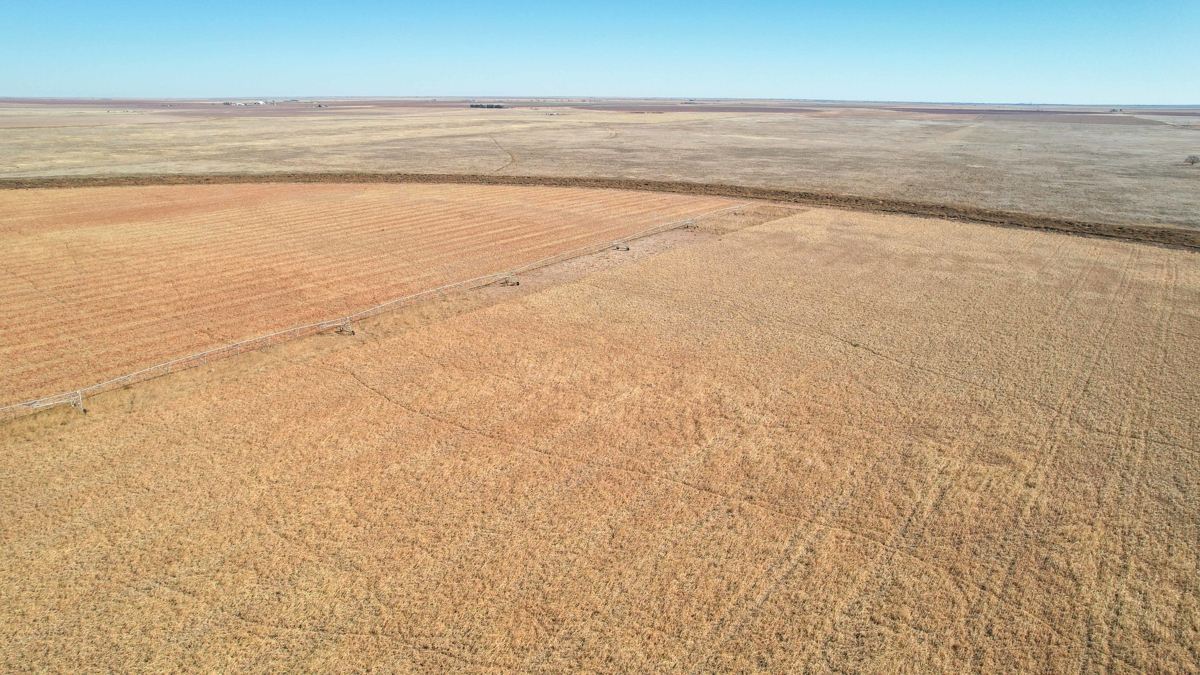 east of paved CR 77 which eventually runs north into State Hwy 114. This farm is equipped with two pivots, (West