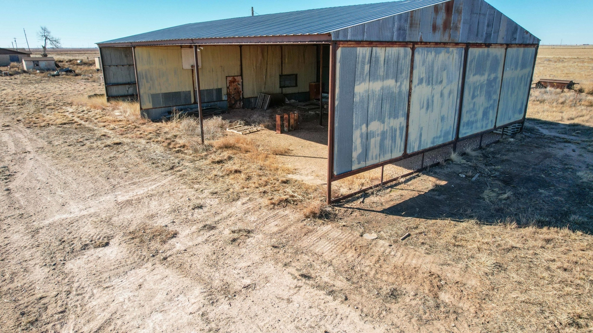good metal barn/shed that is open to the east that could function as a good hay