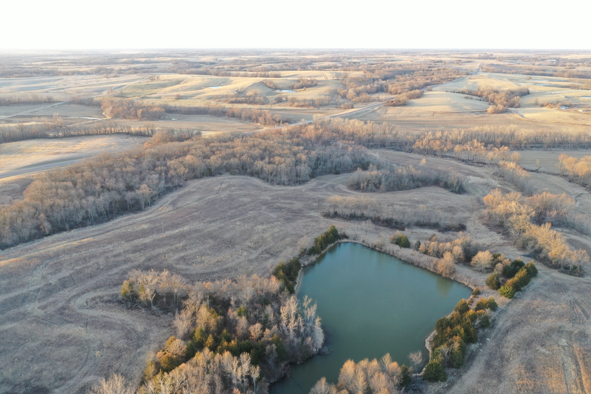 There is a good pond on the property, along with a creek running through the southwest corner, adding to both the appeal and functionality of the land. A gravel road runs along the north side, offering convenient access.