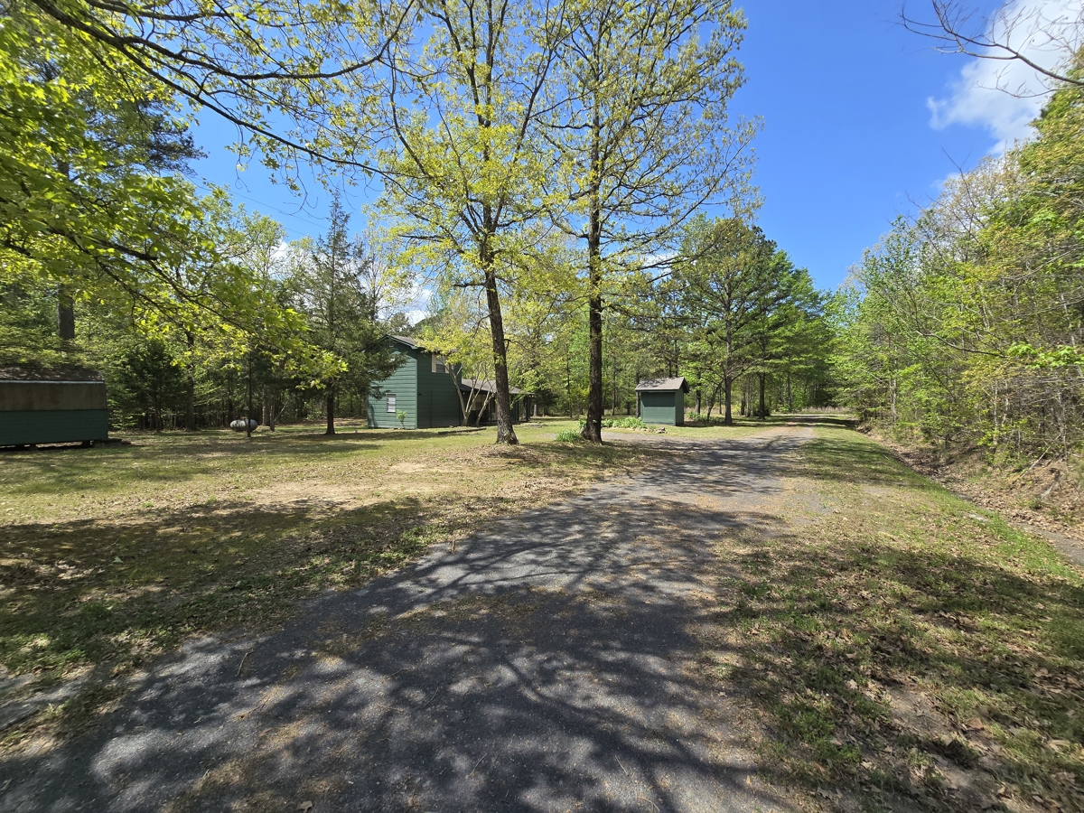 There is a circular driveway from Peaceful Lane to Hwy 63.