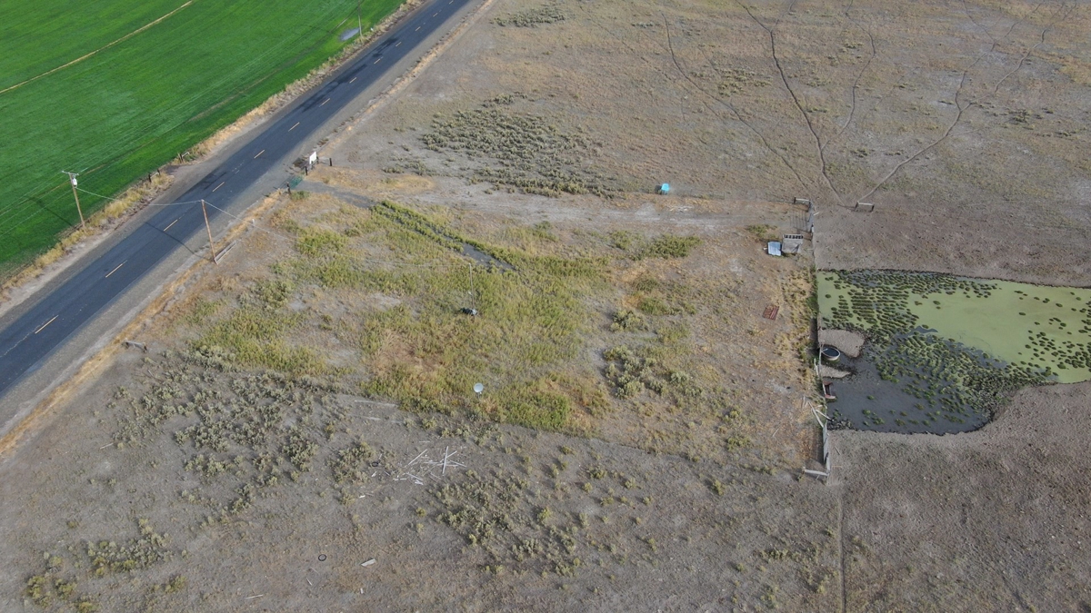 The property hosts one domestic well, is fully fenced, and has been used for livestock grazing for many years. Power is located on the property and along both paved county roads which borders the west and south sides of the property. There is two-track dirt road access through the property.
