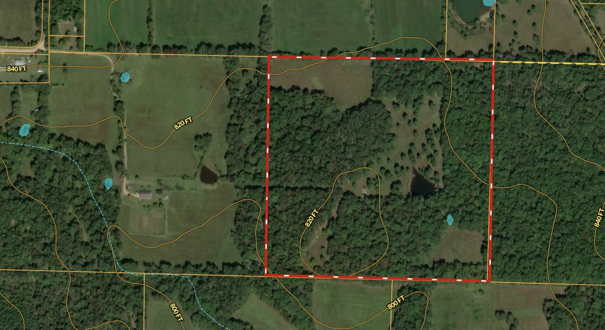Directions: From J Highway and K Highway go to end of K in Wilderness, turn left on CR 164, go 4/10 mile to dim trail to right and go about 660 feet to entrance to the 40 acres.