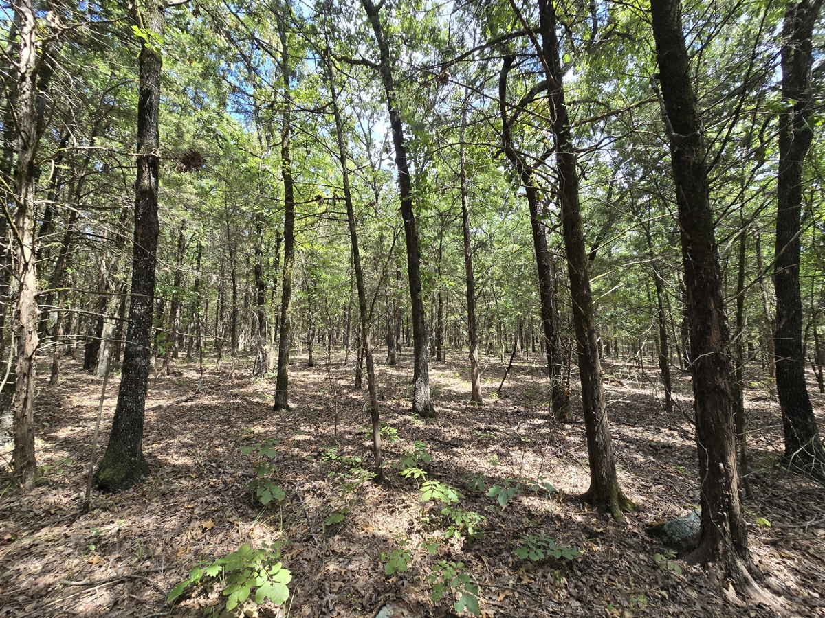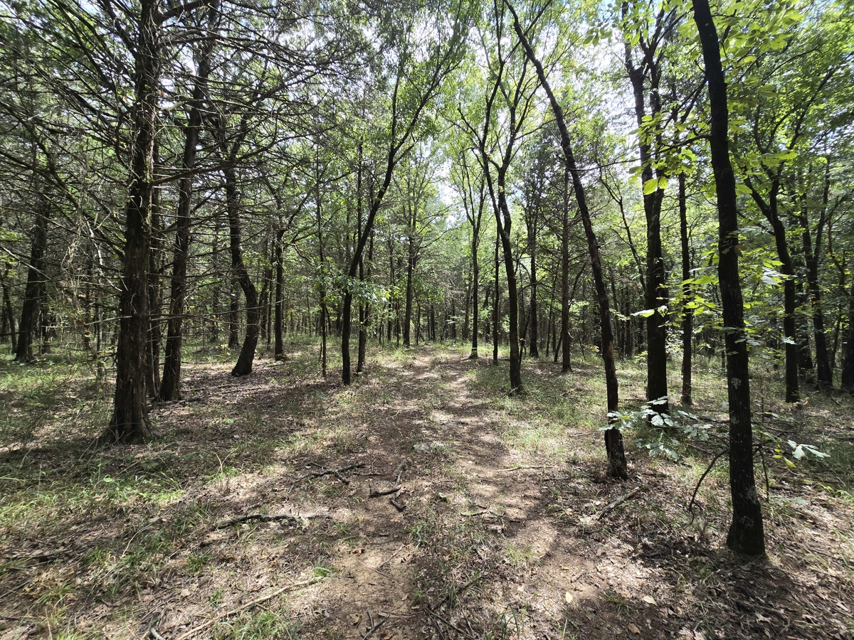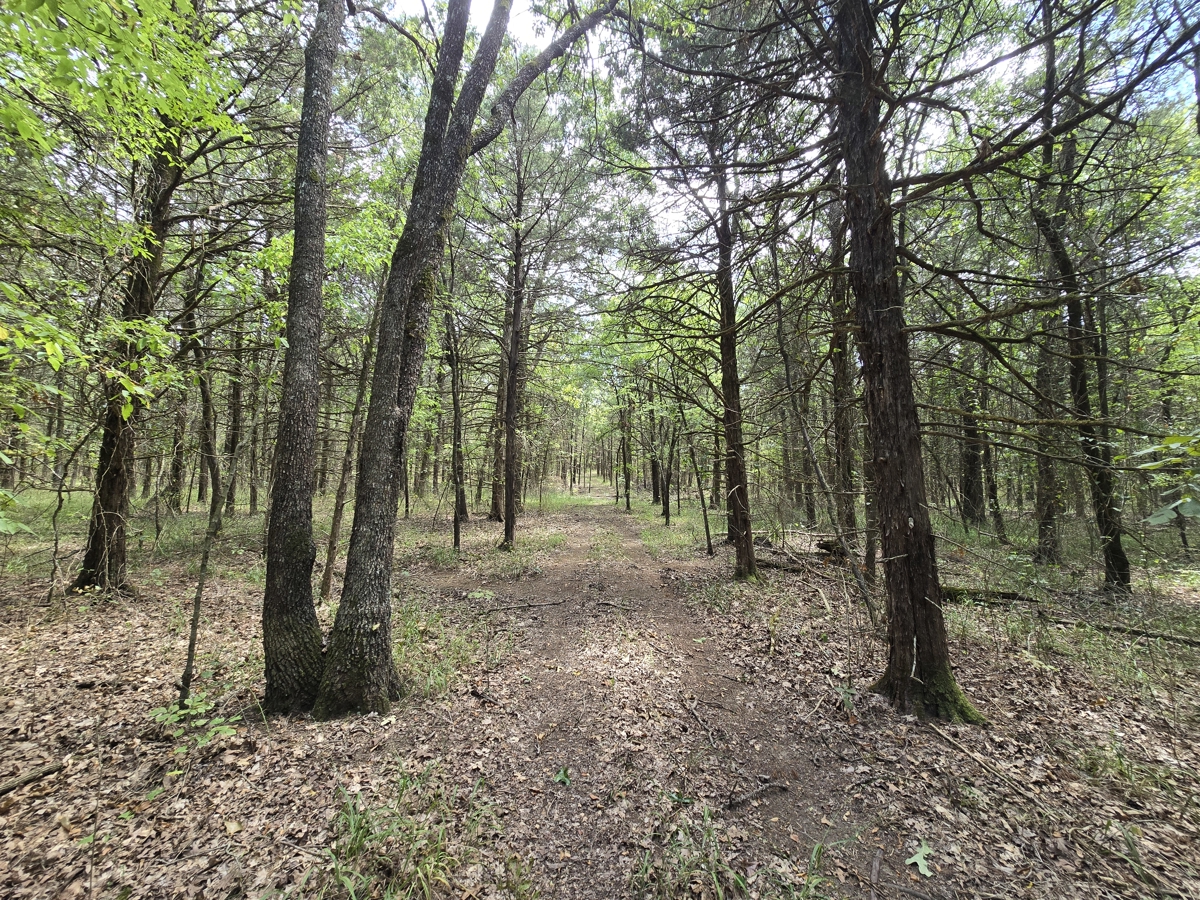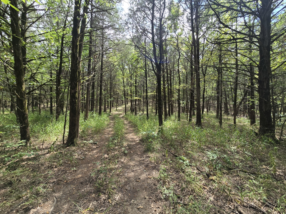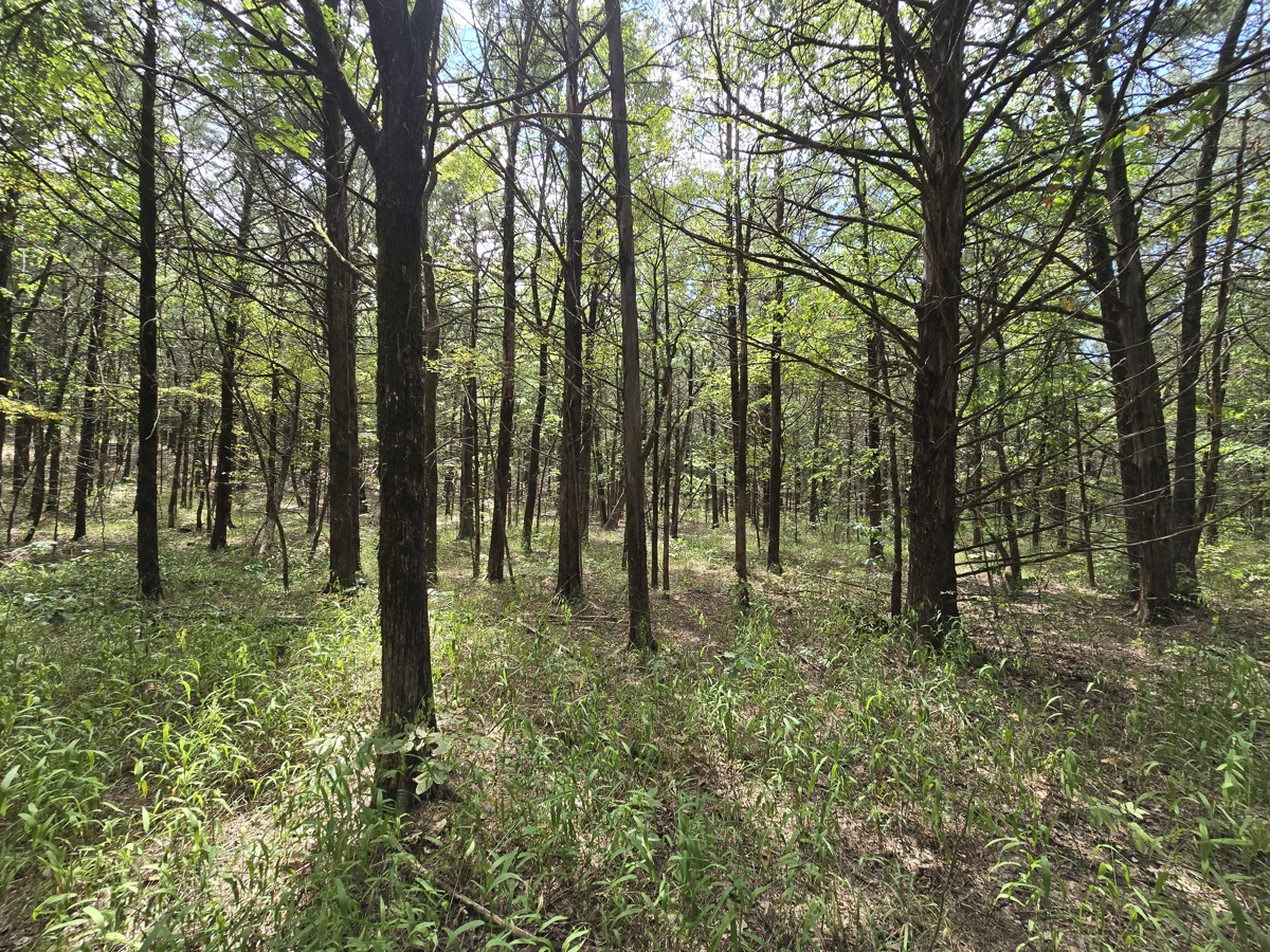 of native hardwoods—oaks, hickory, and elm—along with eastern red cedar and