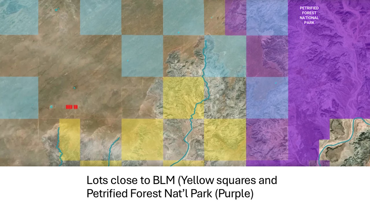 Owning Arizona Land is affordable and easy with this 1.25 acre parcel located north of I-40 near the town of Sun Valley, AZ. Rural location, off-grid, private, peaceful….great place to escape to. Seller also has five more lots with 3 adjoining lots to this one. Each is 1.25 acres and offering a discounts for a multiple lot purchase. At an Elevation just over 5,400 ft and Close to BLM Land and just west of Petrified Forest National Park. GPS coordinates for this lot are 35.045, -109.9918 The coordinates for the additional lots offered are: Lot 49: 35.045, -109.9912 Lot 50: 35.045, -109.9907 Lot 51: 35.045, -109.9901 Lot 54: 35.045, -109.9884 Lot 55: 35.045, -109.9879