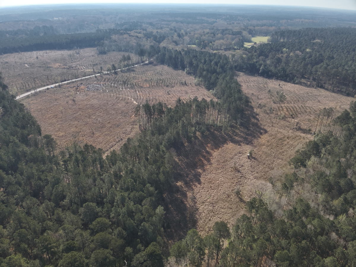 approximately three-year-old pine plantation provides an early-stage timber